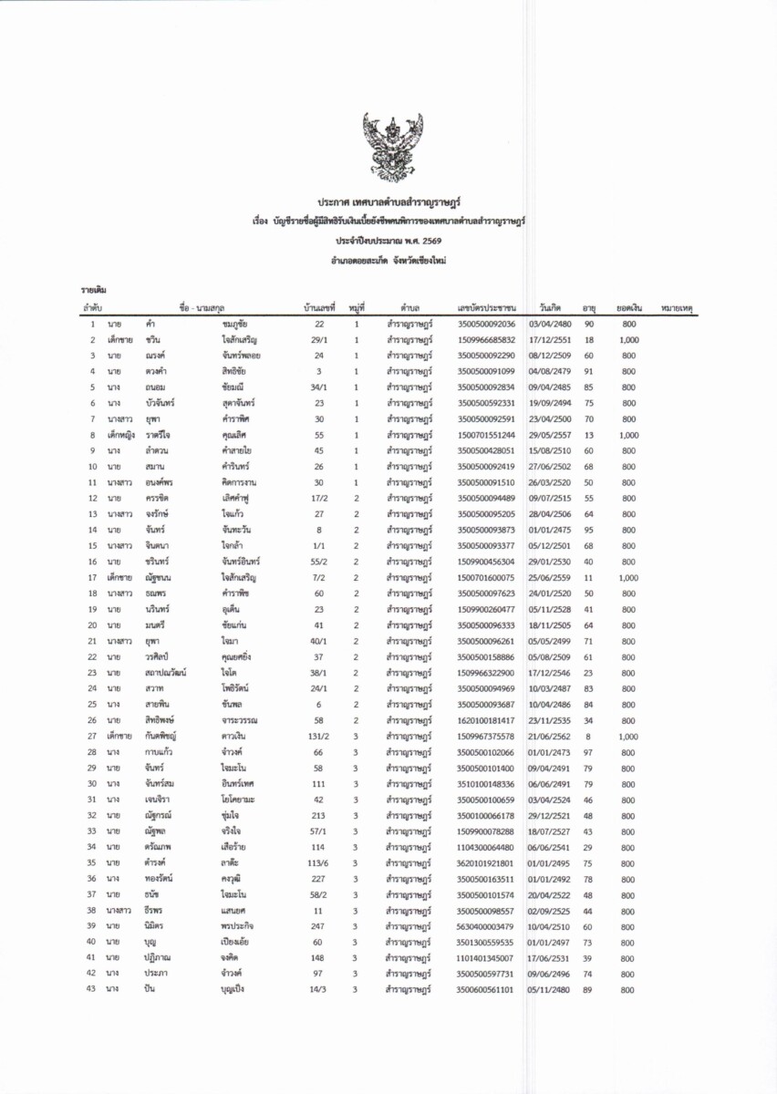 บัญชีรายชื่อผู้มีสิทธิรับเงินเบี้ยยังชีพคนพิการของเทศบาลตำบลสำราญราษฎร์ ประจำปีงบประมาณ พ.ศ. 2569 Post published: Post category:งานพัฒนาชุมชน / ข่าวประชาสัมพันธ์ / ข่าวประชาสัมพันธ์ ประกาศเทศบาลตำบลสำราญราษฎร์ บัญชีรายชื่อผู้มีสิทธิรับเงินเบี้ยยังชีพคนพิการของเทศบาลตำบลสำราญราษฎร์ ประจำปีงบประมาณ พ.ศ. 2569 บัญชีรายชื่อผู้มีสิทธิรับเงินเบี้ยยังชีพคนพิการฯ ประจำปีงบประมาณ พ.ศ. 2569 แชร์เลย : You Might Also Like ขอนัดหมายอธิบายผลการตรวจสุขภาพให้กับประชาชนที่เข้าตรวจสุขภาพ เมื่อวันที่ 23 กันยายน 2567 ให้มาฟังผลการตรวจสุขภาพ ในวันที่ 30 ตุลาคม 2567 เวลา 14.00 – 16.30 น. ณ เทศบาลตำบลสำราญราษฎร์ “การกำจัดขยะติดเชื้อในชุมชน” ขอความร่วมมือเฝ้าระวังเเละป้องกันการเเพร่ระบาดของโรคติดเชื้อไวรัสโคโรนา 2019 ในช่วงเทศการลอยกระทง ประชุมหารือการจัดกิจกรรมโครงการป้องกันเเละเเก้ไขปัญหาหมอกควันเเละไฟป่า