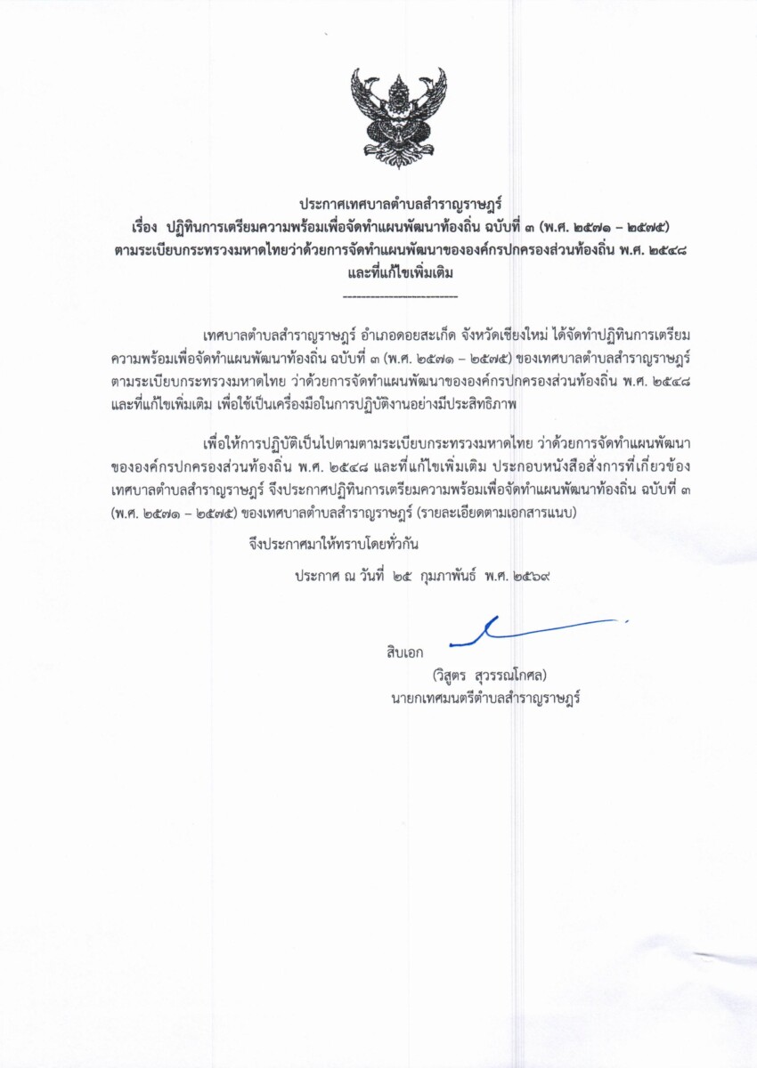 ประกาศเทศบาลตำบลสำราญราษฎร์