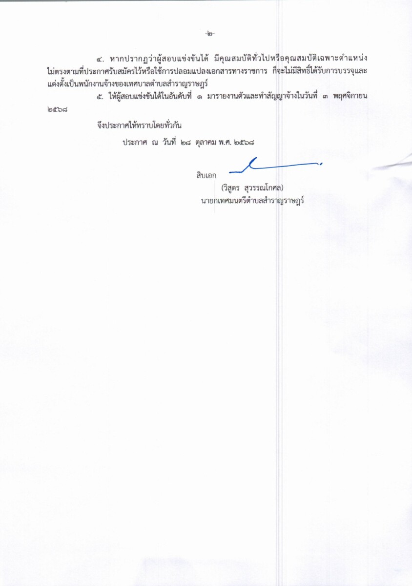 ประกาศเทศบาลตำบลสำรราญราษฎร์